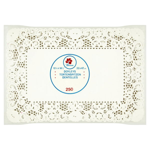 Create a refined table setting with these 12.5"x18" White rectangular doylies. This case includes 4 boxes of 250 doylies each. They are perfect for use under large platters, trays, or as decorative accents, elevating the visual appeal of your dining occasions. Sysco tray paper
