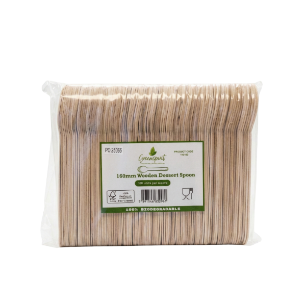 The new 160mm Greenspirit wooden dessert spoons provide a stylish, eco-friendly alternative to plastic cutlery. Key Benefits: Crafted from renewable, fully biodegradable wood Versatile 160mm length suitable for serving desserts, yogurts, ice creams, and other sweet dishes Supplied in 10 packs of 100 spoons, ideal for restaurants, catering operations, and events Perfect for all types of desserts, these Greenspirit wooden spoons enhance your presentation while supporting sustainable dining. Sysco