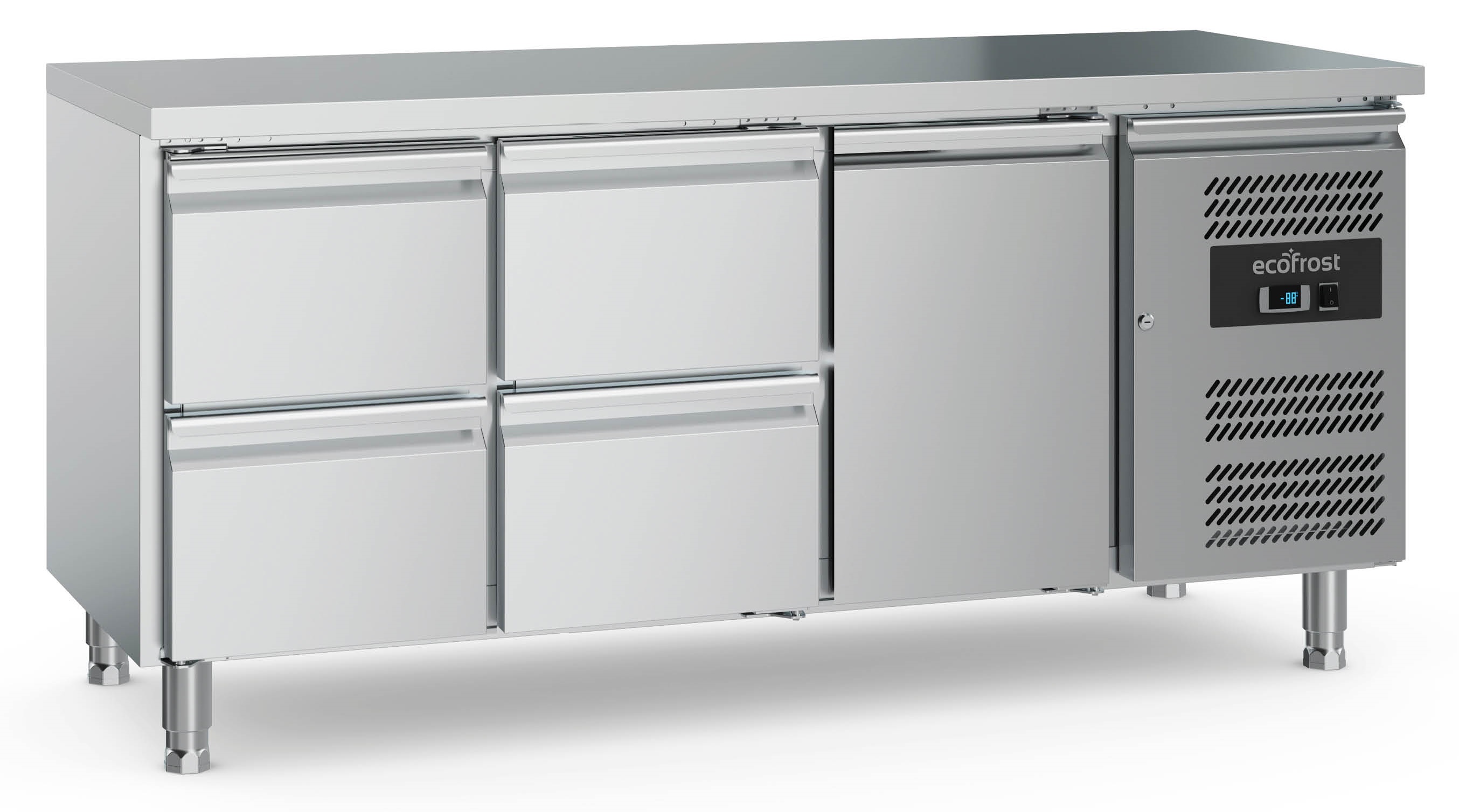 Refrigerated counter with one door and four drawers