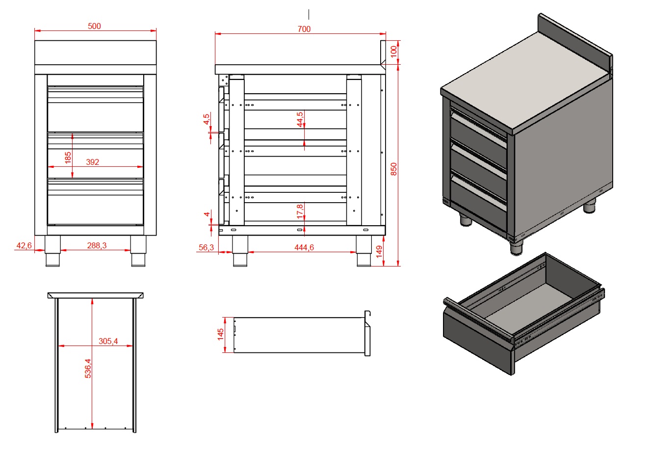 Provides ample workspace with a 700 mm width