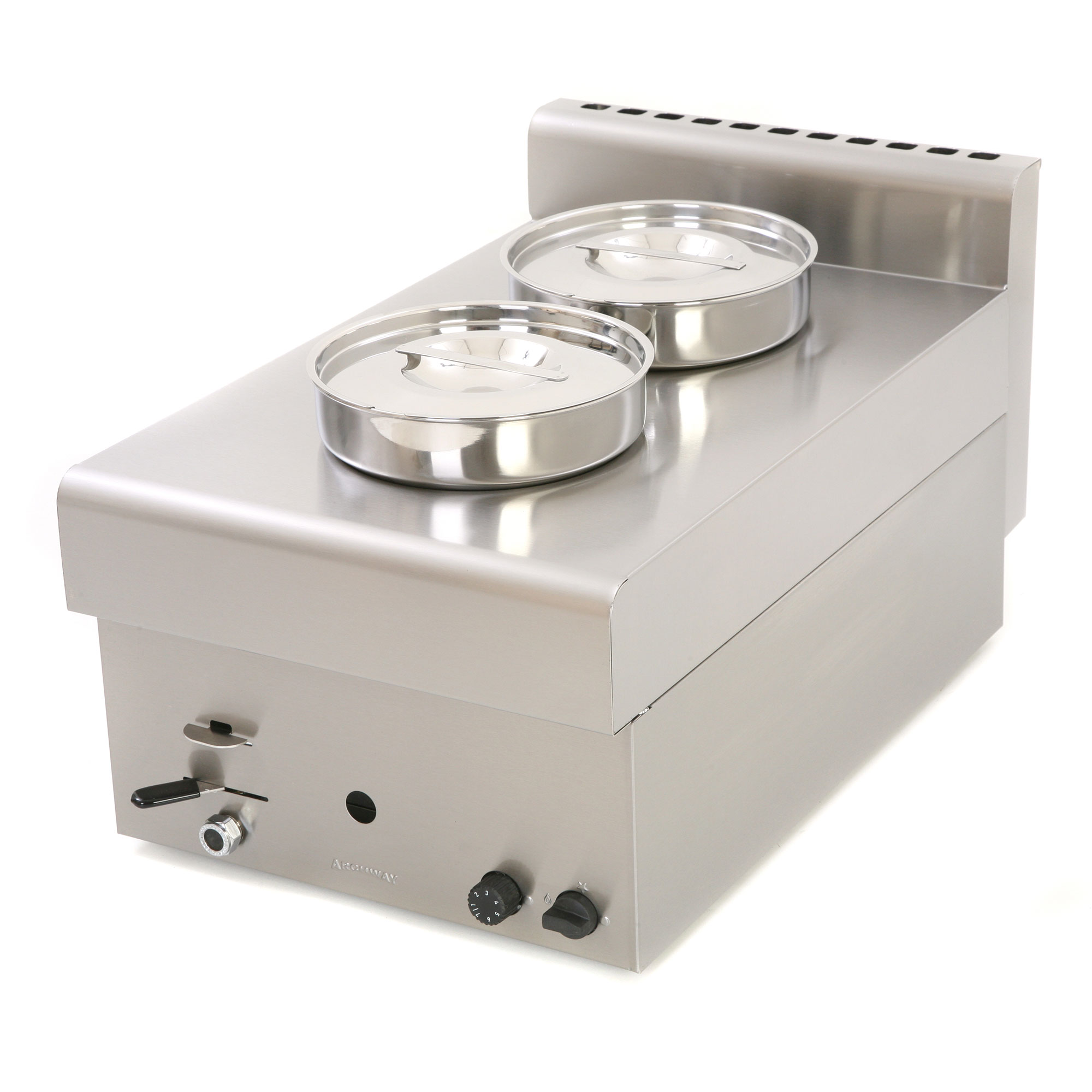 The Archway countertop gas bain marie is an excellent choice for restaurants, cafes, and canteens. It is designed to keep food warm for extended periods and offers two separate pots for cooking or reheating multiple dishes. Features include an adjustable thermostat control, stainless steel construction for easy cleaning, a splash guard for additional safety, and easy-to-use side handles. With its durable and reliable design, this countertop gas bain marie is the perfect solution for your commercial kitchen.