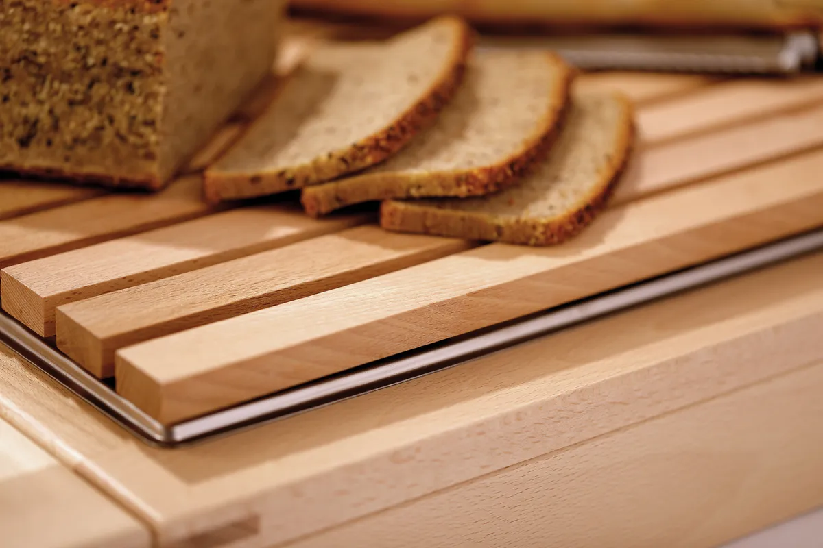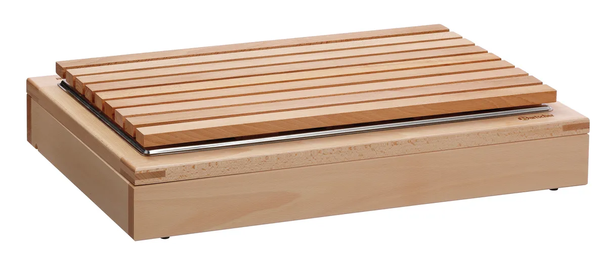With the modular set in a simple wooden design, every buffet appears attractively structured and tidy. Whether for breakfast, lunch, or evening buffets, the chopping board can always be used. The crumb tray included in the set ensures the buffet always looks clean.