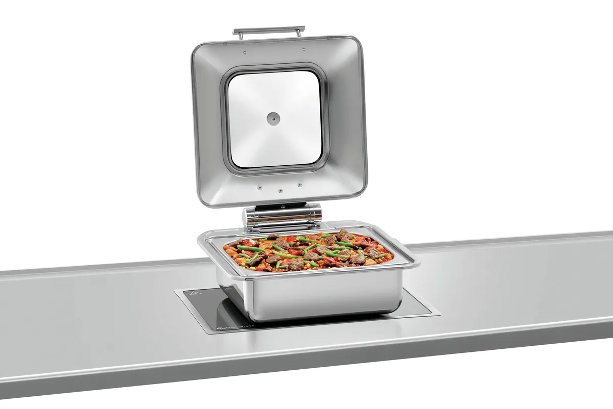 - Heating type: External, via level induction or glass ceramic installed hob