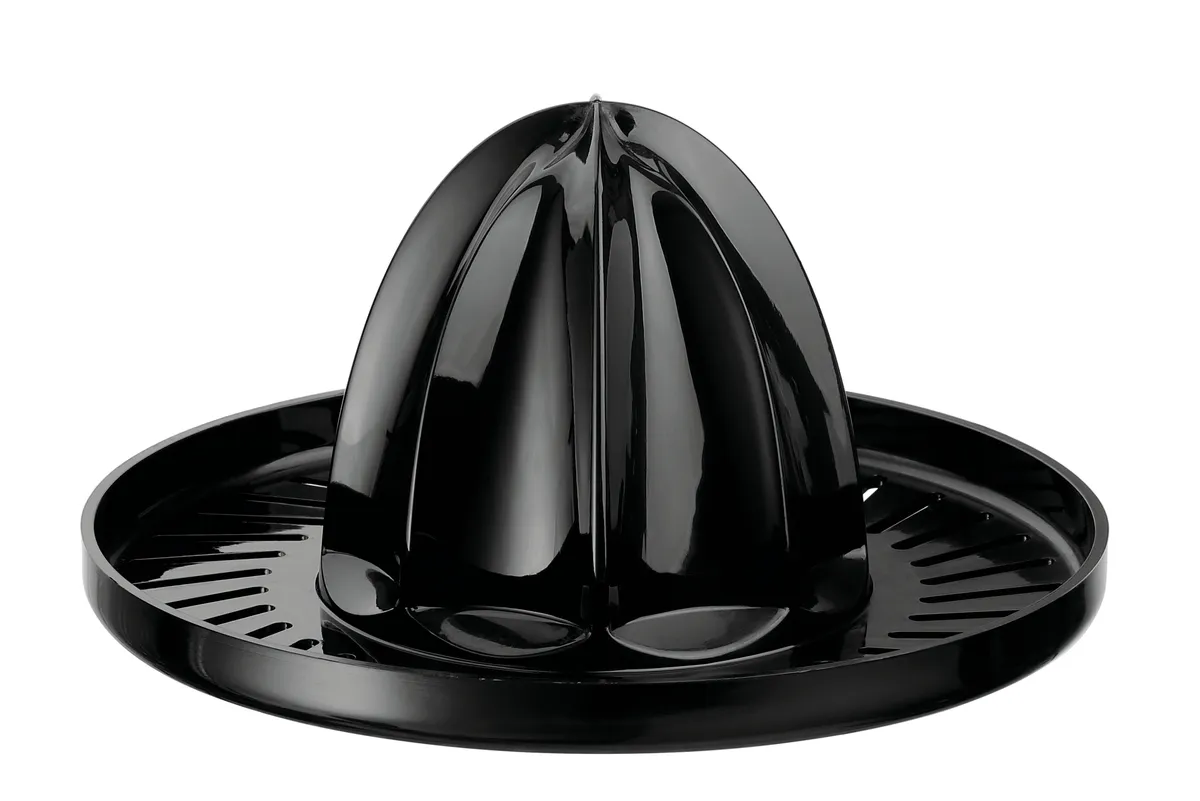 - Juice container and pressing cone removable and dishwasher-safe