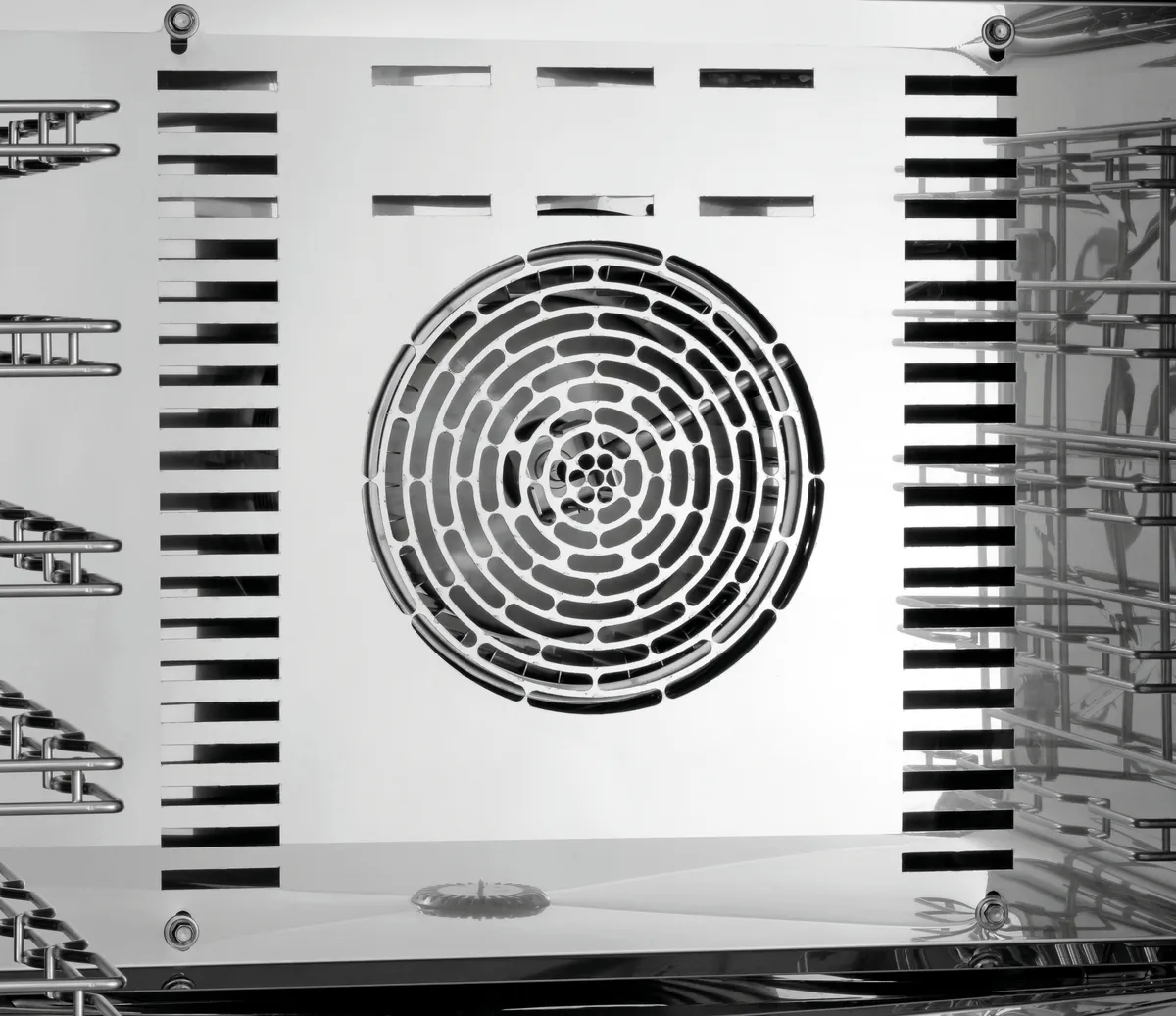 - Properties: Rounded baking chamber, Bearing rails can be detached, Double-winged door pane, LED lighting in door