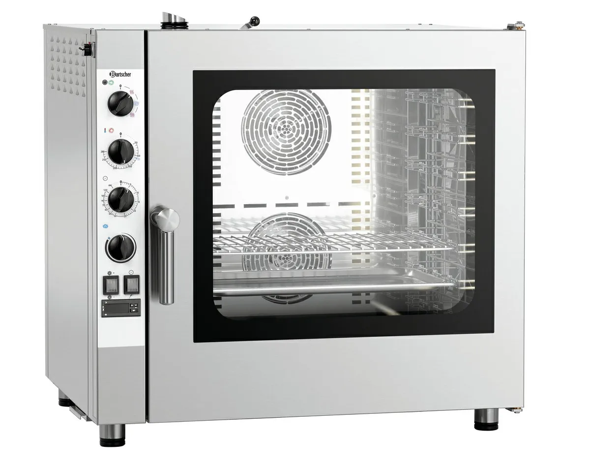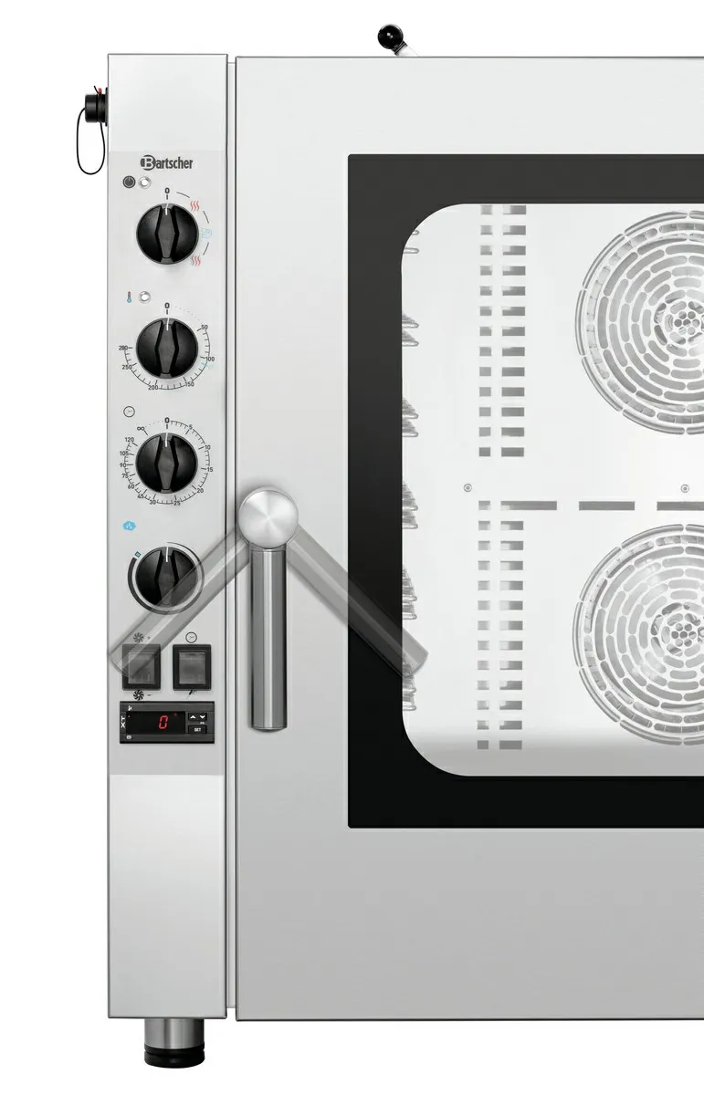 - Functions: Circulating air, Steam, Combi-steaming, Low temperature cooking, Reversing motor direction (fan wheels)