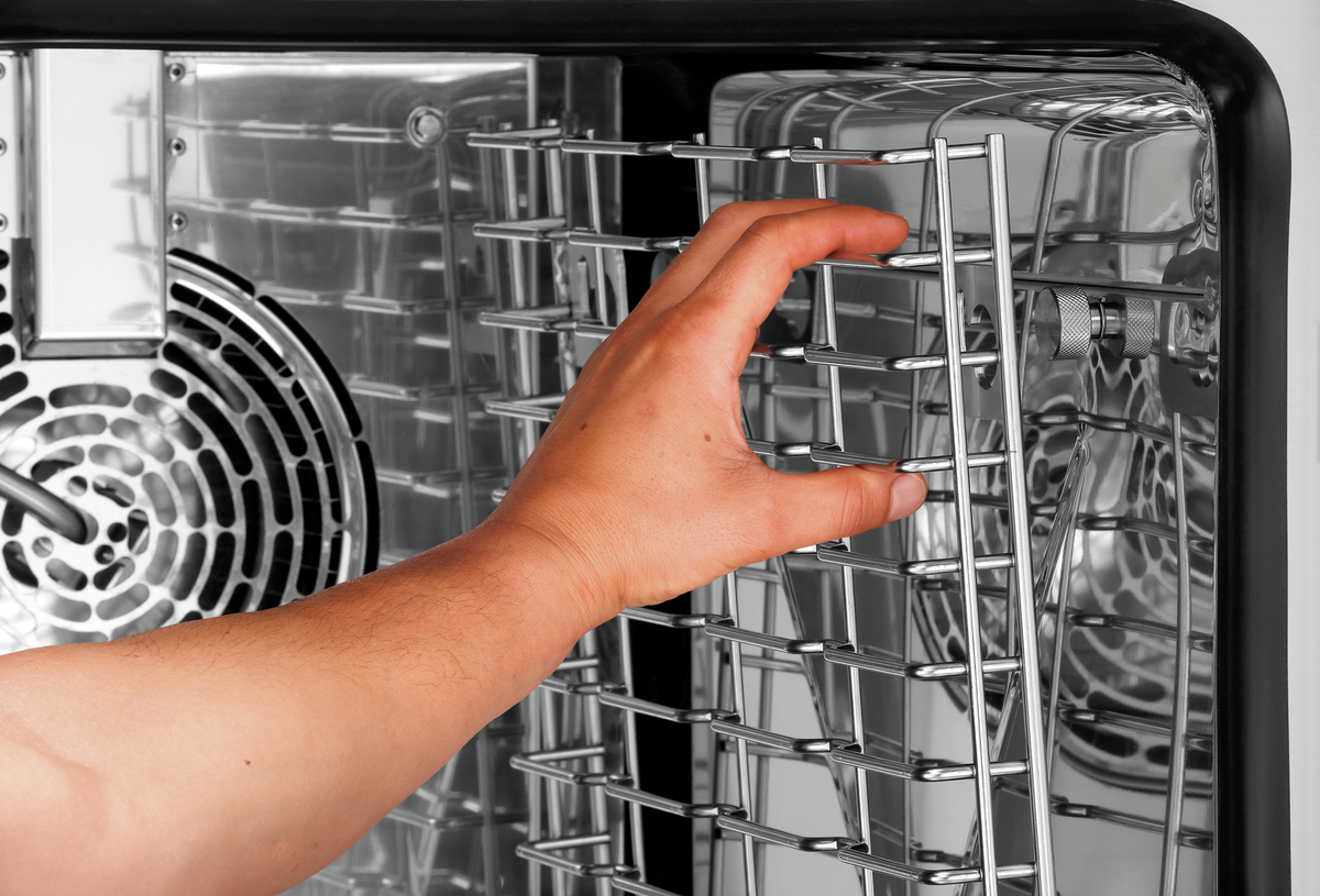 • Properties: Rounded cooking chamber ,Bearing rails can be detached ,Double-winged door pane ,LED lighting in door