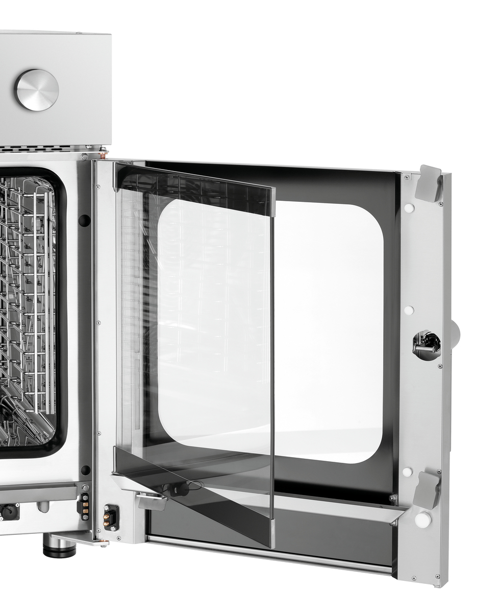 • Properties: Rounded cooking chamber ,Bearing rails can be detached ,Double-winged door pane ,LED lighting in door