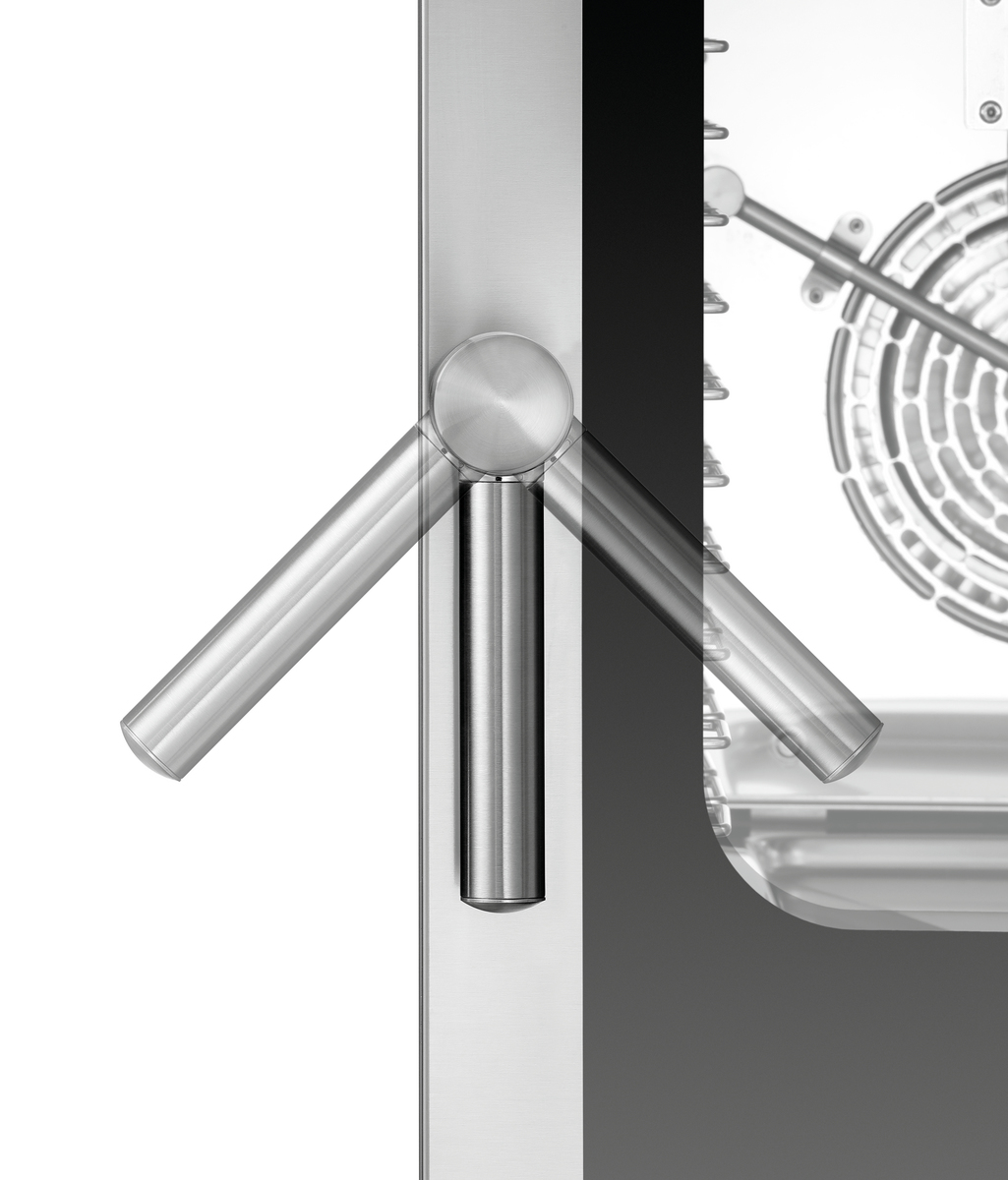 • Properties: Rounded cooking chamber ,Bearing rails can be detached ,Double-winged door pane ,LED lighting in door