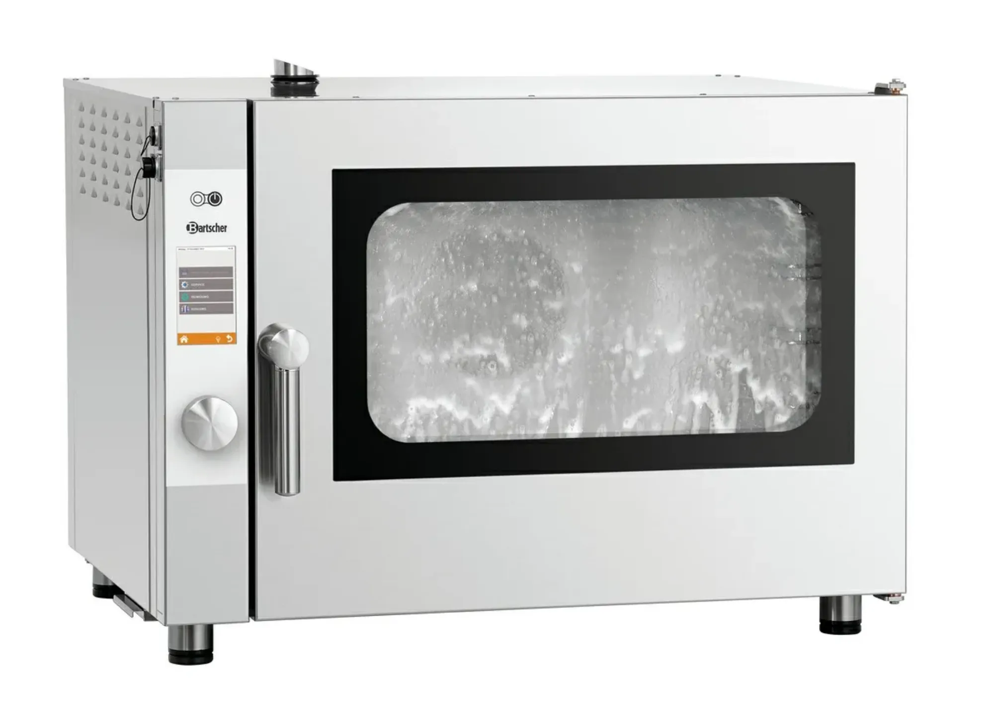- Properties: Rounded baking chamber, Bearing rails can be detached, Double-winged door pane, LED lighting in door