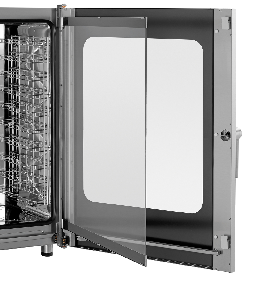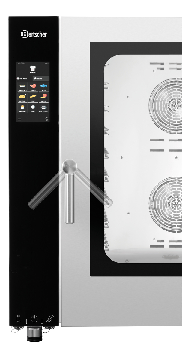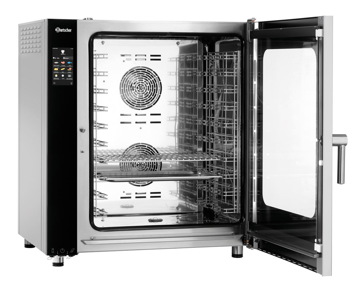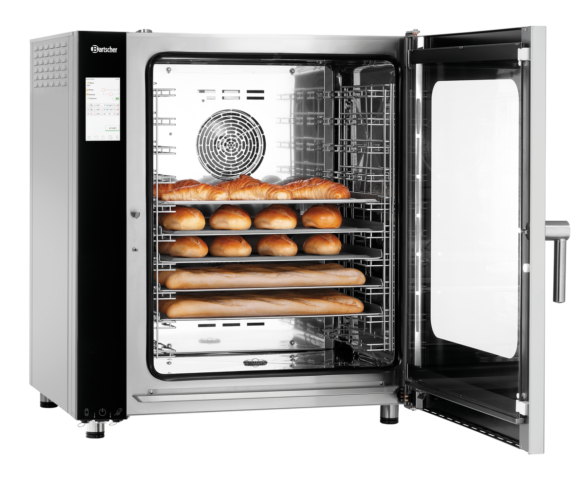 • Properties: Rounded cooking chamber ,Bearing rails can be detached ,Double-winged door pane ,LED lighting in door ,Socket (500 W) for connection of an extractor hood