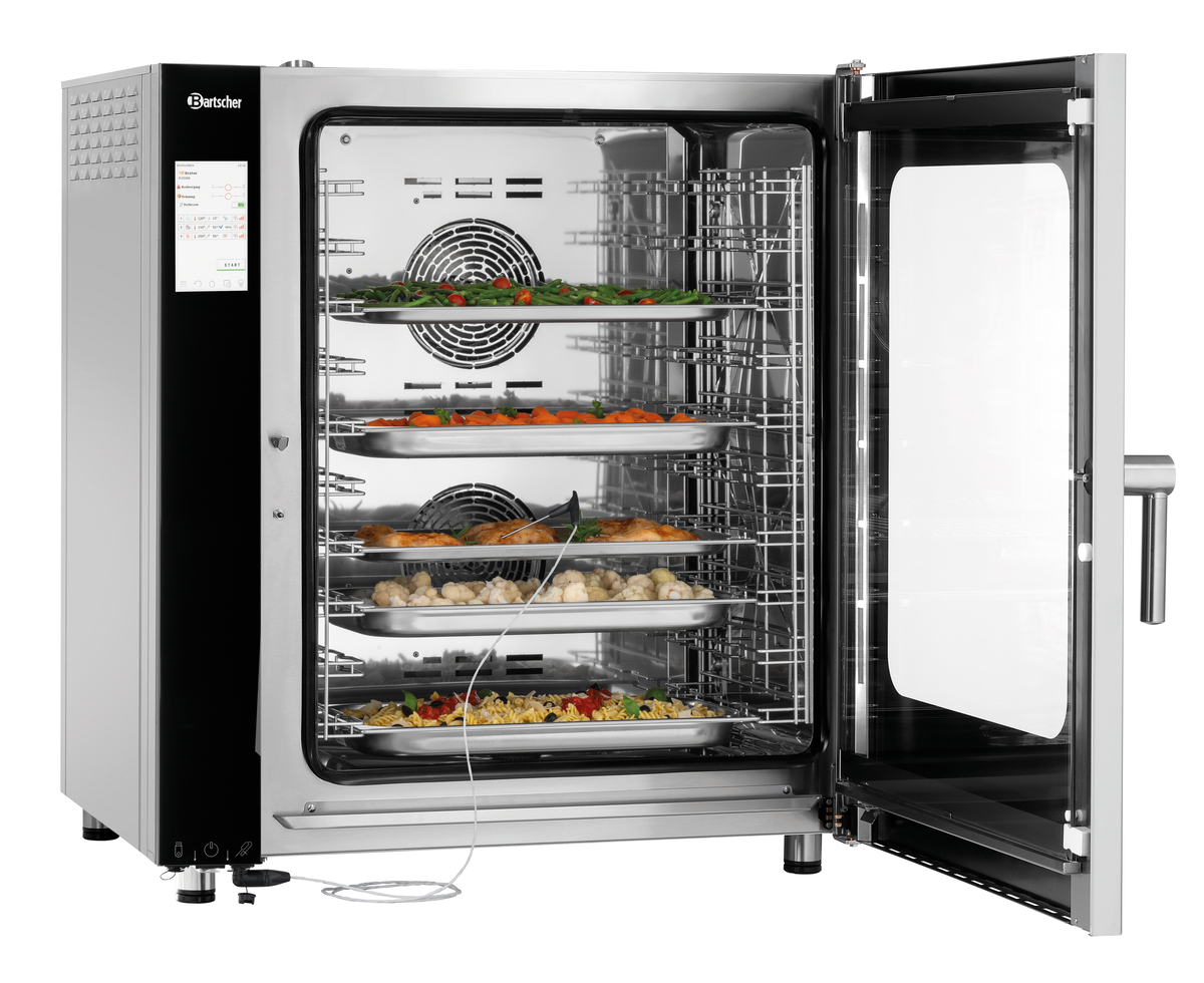 • Functions: Automatic 3-level cleaning system with drying program ,Steam production by means of direct injection ,Steam ,Delta-T cooking ,Combi-steaming ,Low temperature cooking ,Reversing motor direction (fan wheels) ,Circulating air ,Cooldown during cooking phase ,Manual steaming