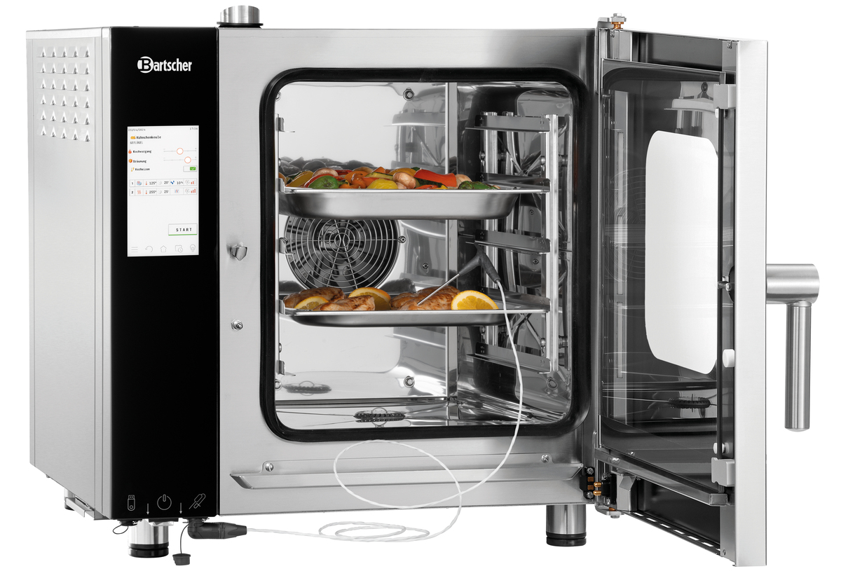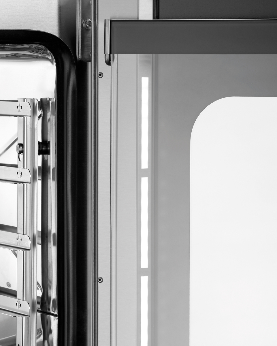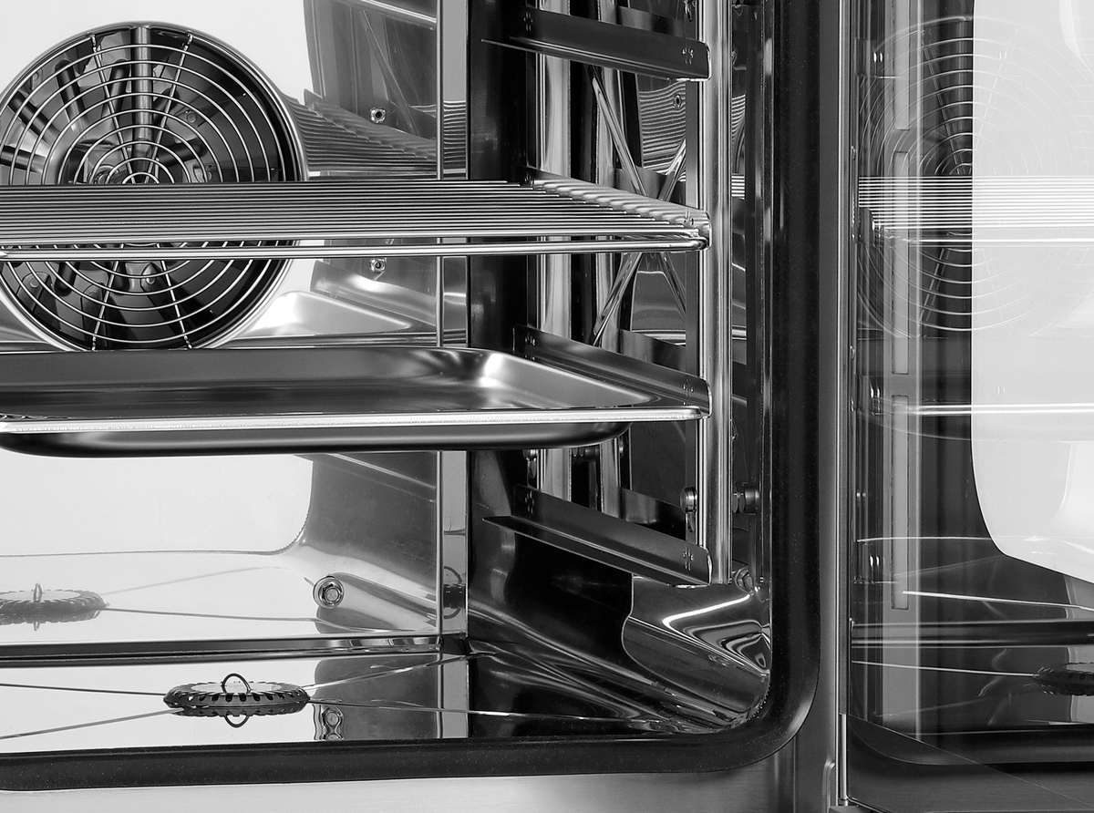 • Properties: Rounded cooking chamber ,Bearing rails can be detached ,Double-winged door pane ,LED lighting in door ,Pluggable