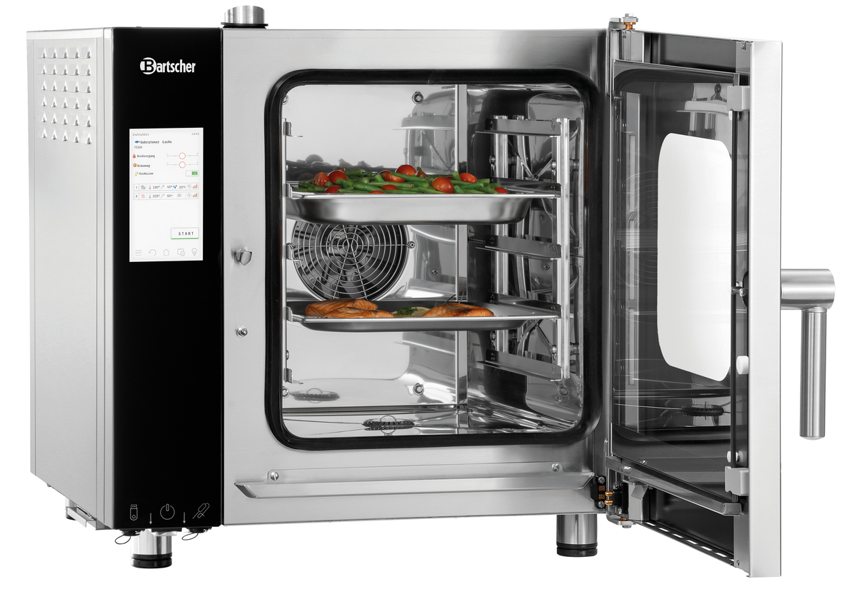 • Properties: Rounded cooking chamber ,Bearing rails can be detached ,Double-winged door pane ,LED lighting in door ,Pluggable