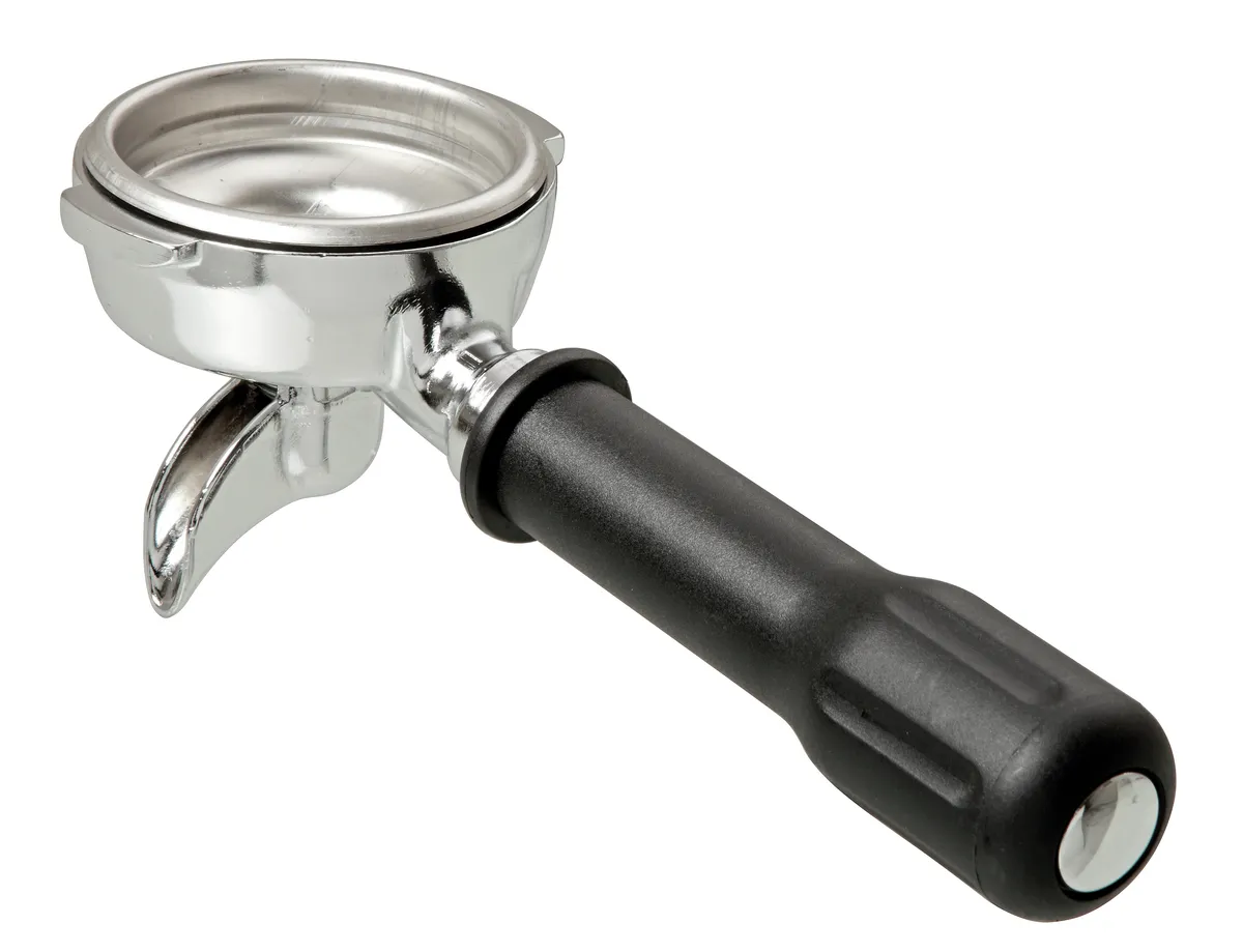 This handle is designed specifically for coffee machines and is constructed from solid material.