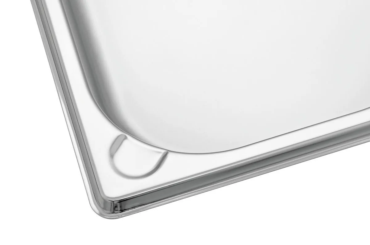 GN containers according to EN 631 are made of rustproof chrome nickel steel with a silk matt surface.