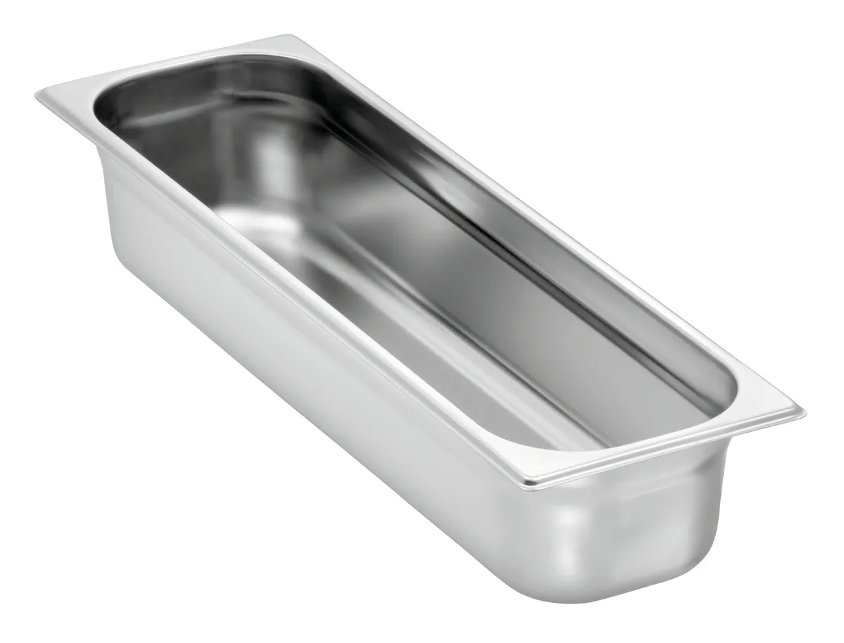 GN containers according to EN 631 are made of rustproof chrome nickel steel with a high gloss surface.