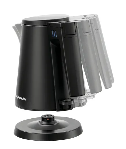 - Properties: 360° contact connection, Covered heating element, Min./max. mark inside, Safe carrying handle, Kettle removable from the base, wireless