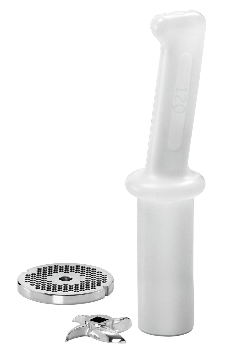 • Including: 1 perforated disk 4.5 mm ,1 stainless steel knife, 4-wing ,1 stamper