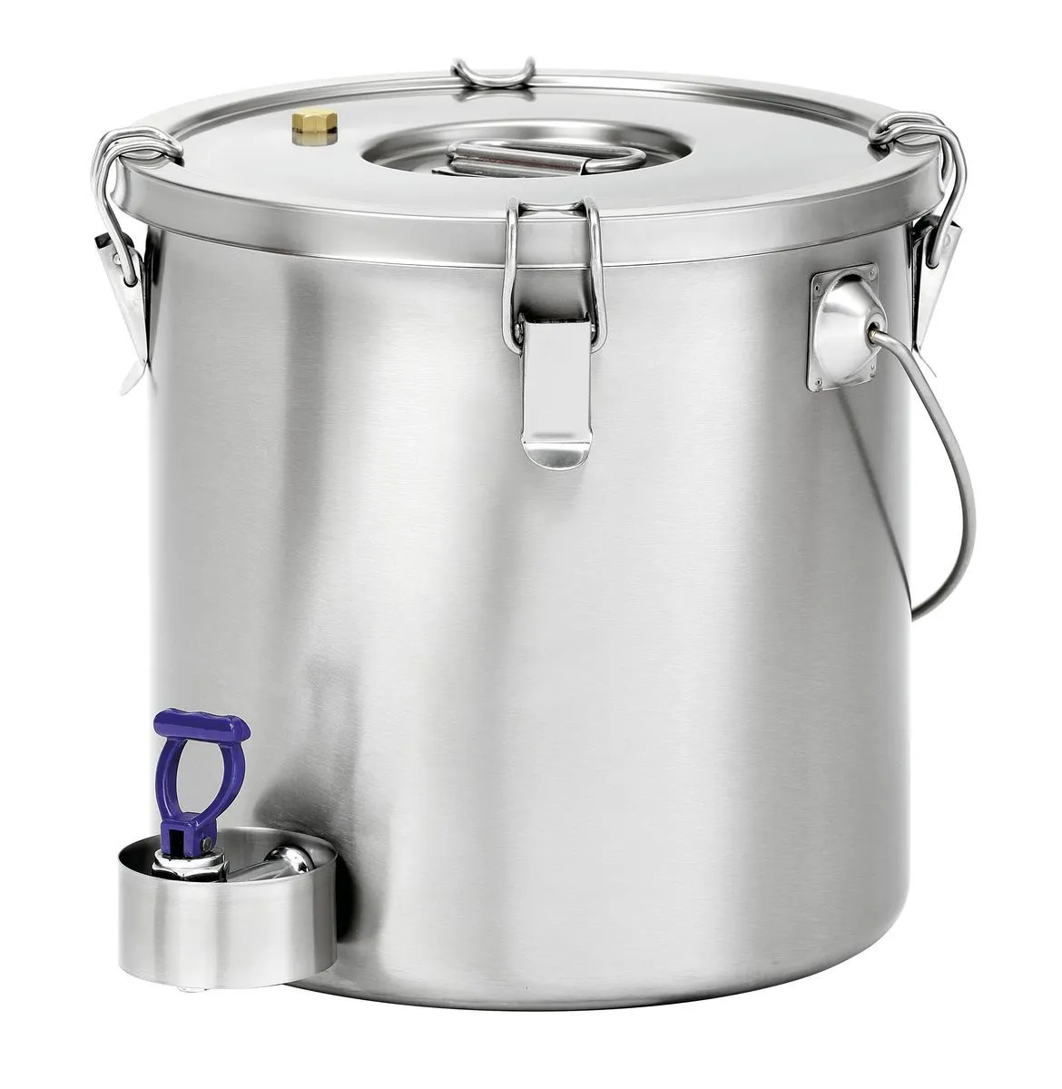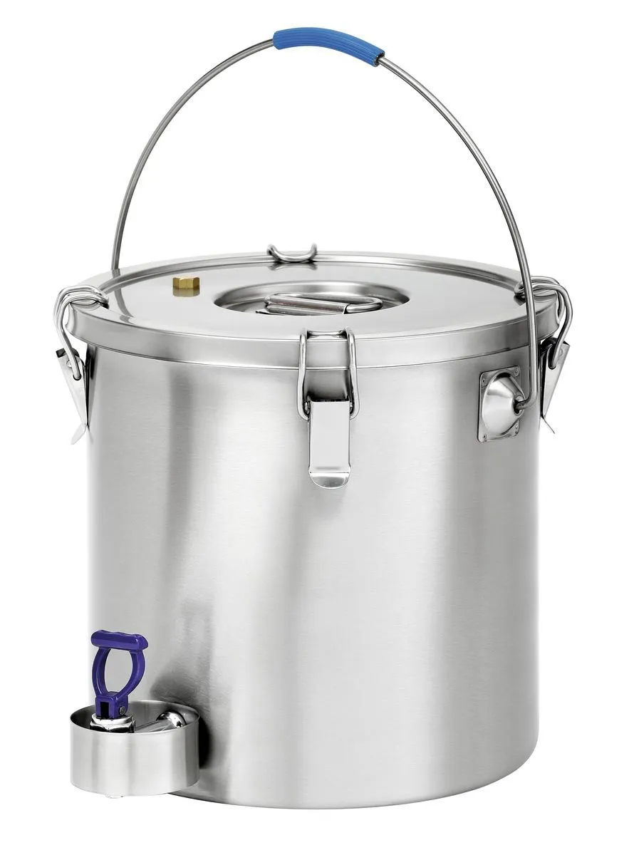 - Lid with 4 clamping clips and silicone seal