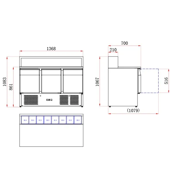 Size (H x W x D) (mm): 1086 x 1368 x 700