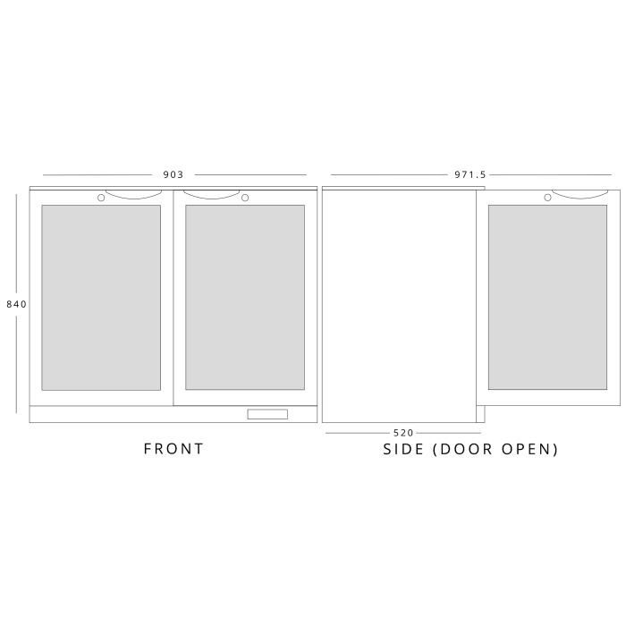 The bestselling BAR range is now available in a lower height unit, maintaining ample storage space internally. This model retains all the major features of its full-sized counterparts, including self-closing doors, LED lighting, and two shelves per door.