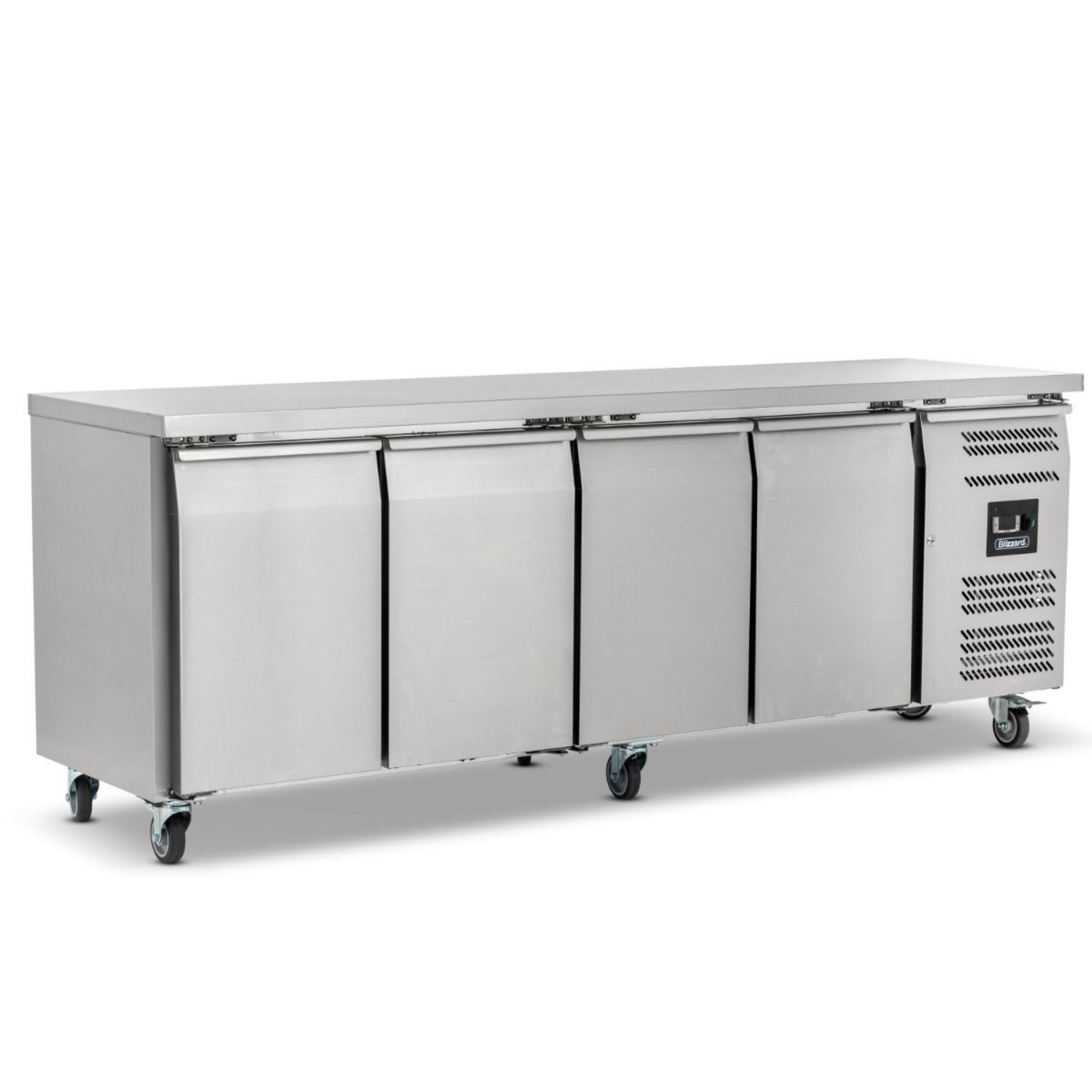 The LBC4NU is a versatile counter freezer, rolling smoothly on heavy-duty castors and featuring replaceable door gaskets and self-closing doors for added convenience. Its ducted system ensures even air distribution, keeping everything perfectly chilled with ventilated cooling.