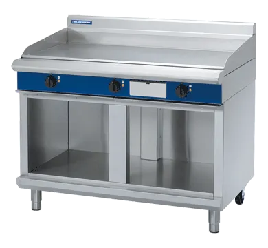 The Blue Seal EP518 1200mm electric chrome griddle offers compact, yet powerful and reliable performance, making it perfect for the busy professional kitchen. With a powerful 18kW thermostatic element controlled by heavy-duty dial controls, the Blue Seal can easily handle busy breakfast, lunch, and dinner services while remaining easy to operate and simple to clean. The robust stainless steel stand features a handy undershelf for additional storage and rear castors for maneuverability.