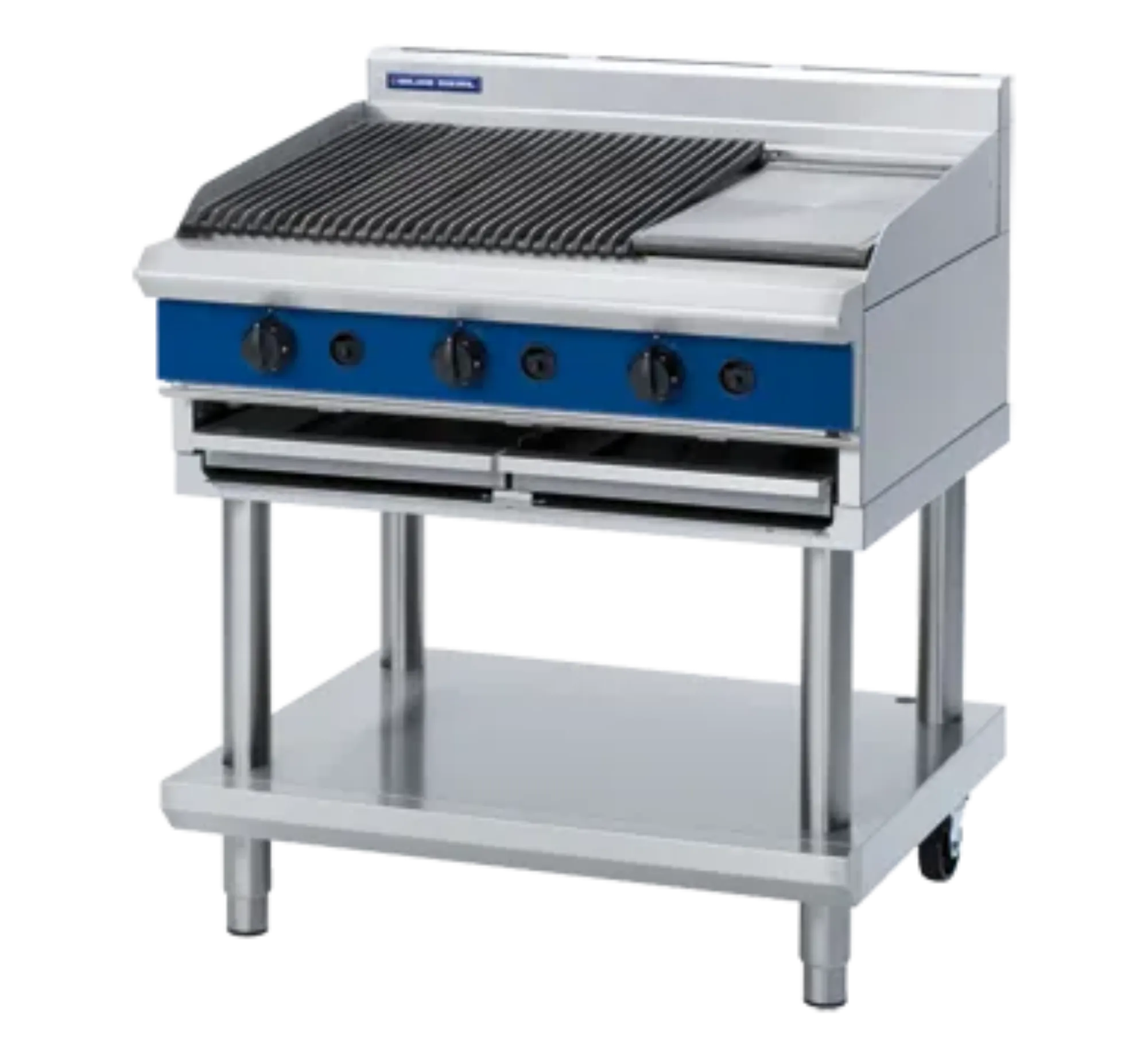 900mm gas chargrill on leg stand