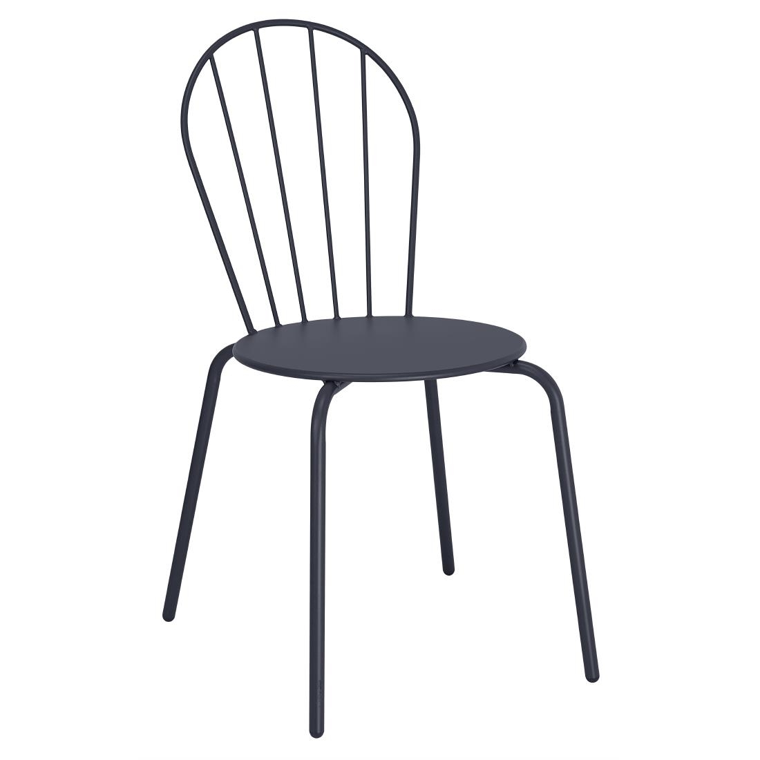 Lightweight and easy to stack up to eight chairs high, Bolero Adeline side chairs make moving, storing and setting up simple. A curved, slatted back keeps things comfortable, while the trendy slate blue colour adds a stylish touch to restaurants, cafés, bars and event spaces. Made from powder-coated steel with an e-coating, they stand up to stains, scratches and heat. UV resistance helps keep the colour from fading, so they stay looking fresh for longer. Black plastic feet provide extra protection for floors, reducing the risk of scratches and marks.