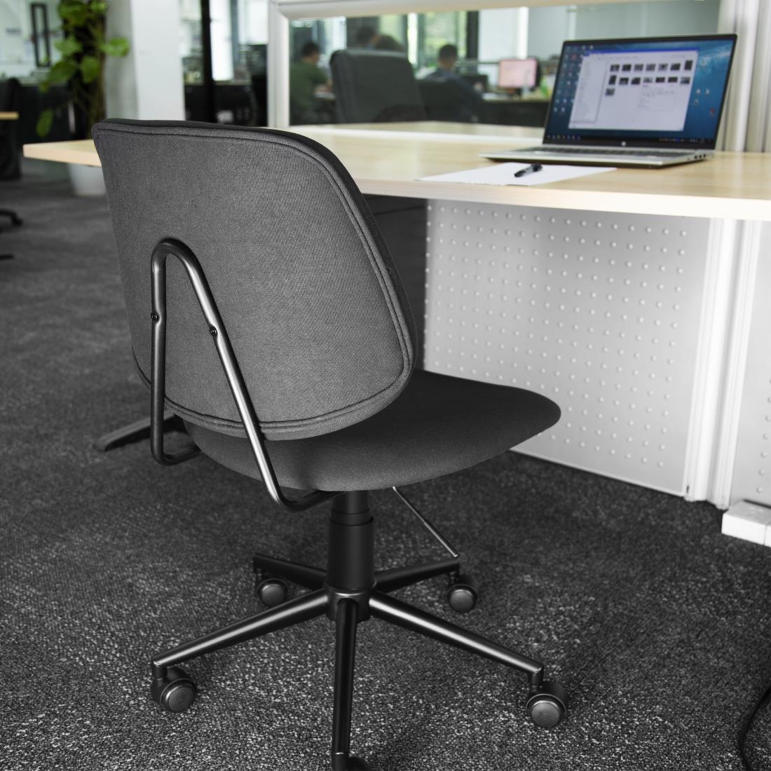 Take your workspace to the next level with this contemporary office chair in black from Bolero. Thanks to its sturdy metal frame and padded grey fabric, this swivel-style chair offers durability and comfort in equal measure. Not only does this ensure that the Bolero office chair stays in as-new condition throughout daily use, but it also helps to minimize aches and pains within the workplace.