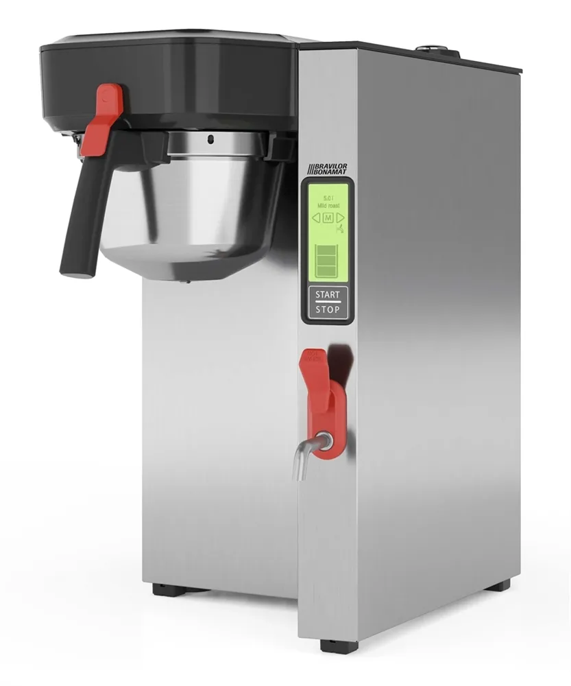 The Aurora Single Low (Aurora SGL) brews filter coffee directly into the dispenser's base. The touchscreen is easy to use, especially when utilizing the pre-set programs: mild, regular, and dark roast. However, the Aurora units allow professionals to optimize every setting of the brewing process, such as water temperature, coffee-water ratio, pre-wet, and brewing time. If you want to create homemade blends or serve single-origin coffees, this feature might be of particular interest. Additionally, you can use the water bypass.