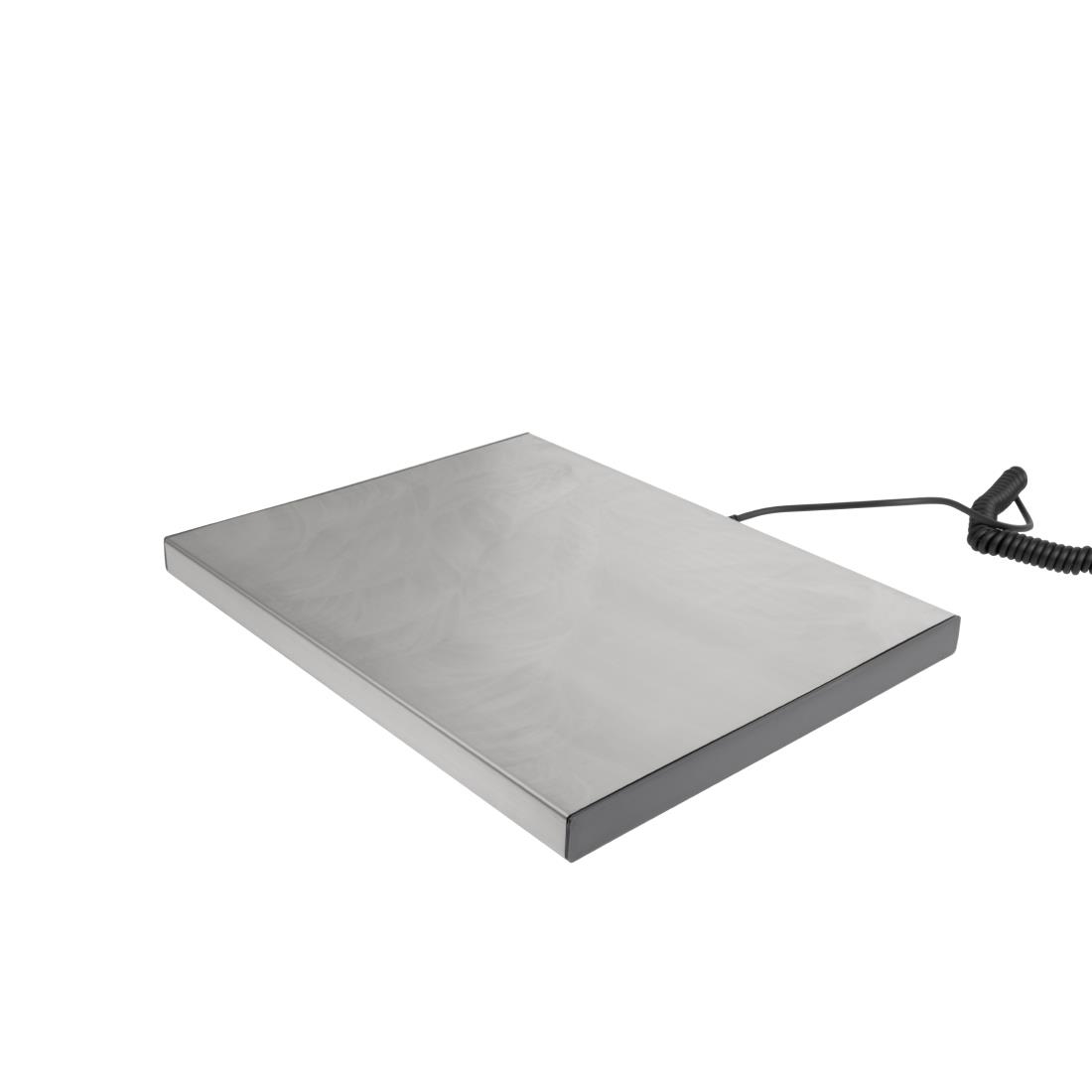 Low-profile platform with brushed stainless steel top for ease of cleaning