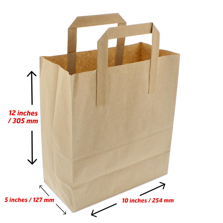 Colour - Brown Material - Kraft Paper Dimensions - 254mm x 381mm x 305mm - 10"x15"x12" Gauge (90) Micron (22.5) Case quantity - 250 Disposal - Recyclable