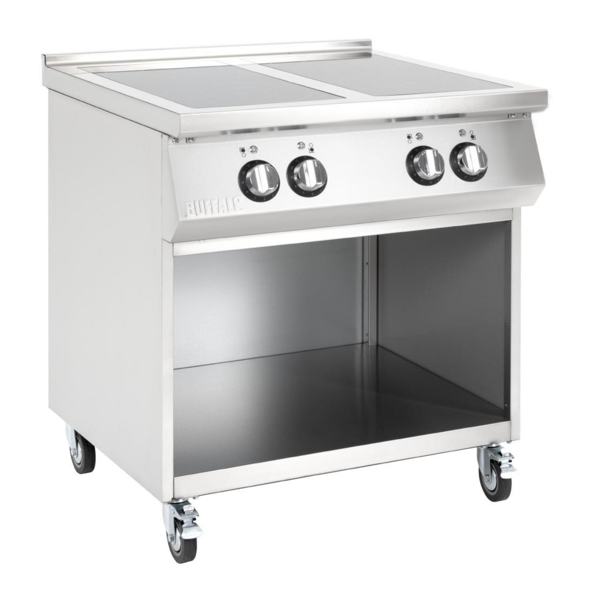 The hob is mounted on a convenient open base with castors, offering valuable additional storage and making it easy to move when necessary. Thanks to the robust stainless steel construction, the entire unit is easy to clean and maintain.