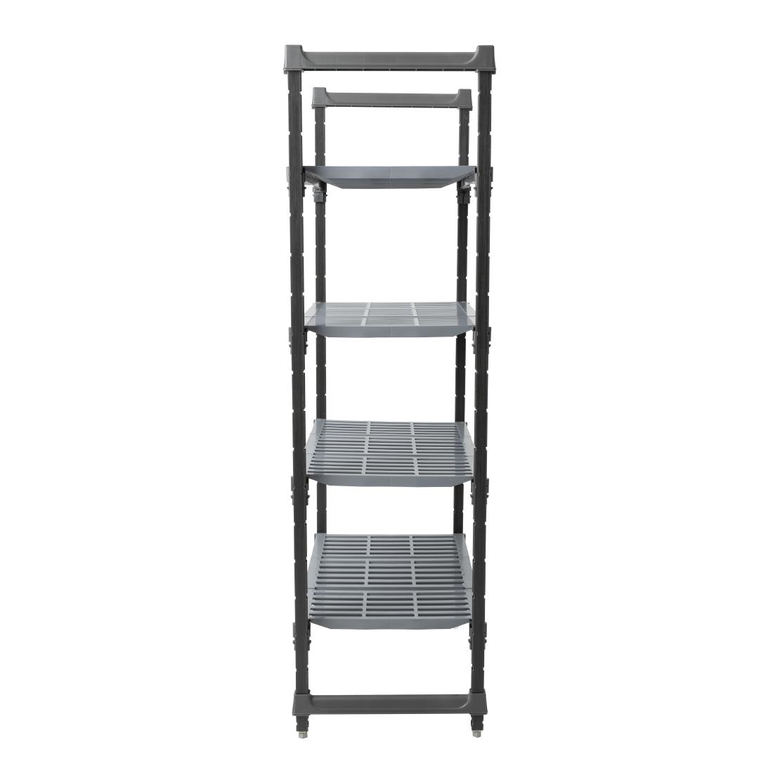 Camshelving Basics Plus, modular, hygienic, stable and durable. Posts and traverses are made from a revolutionary composite material that is light in weight yet strong enough to withstand rigorous loading conditions. Lifetime warranty against rust and corrosion. Fast assembly. Shelves connect and can be adjusted easily every 100 mm. Adjustable foot to level units +/-15 mm. Withstand storage temperatures -38EsC to 88EsC. Use in walk-in coolers, freezers, dry storage and warewashing areas. Impervious to moisture, chemicals, salt, food acids, and humidity. Shelving units interconnect in straight lines with shared posts. Weight bearing is uncompromised and space is maximized. Possible configuration in " L ", in " U ", in " T " or in " Cross " using corner connectors. Posts, traverses and shelf plates wipe clean or can be run thru a dishwasher.