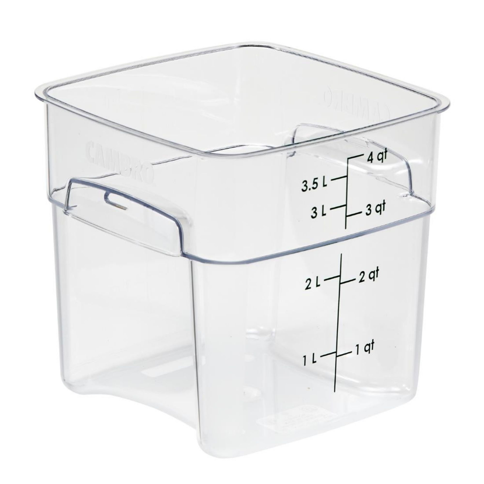 Revolutionize your kitchen with the Cambro 3.8L CamSquares FreshPro Series Food Storage Container, made from durable Camwear. With molded-in recessed handles, the container takes up less space than traditional storage options and is easy to transport whenever needed.