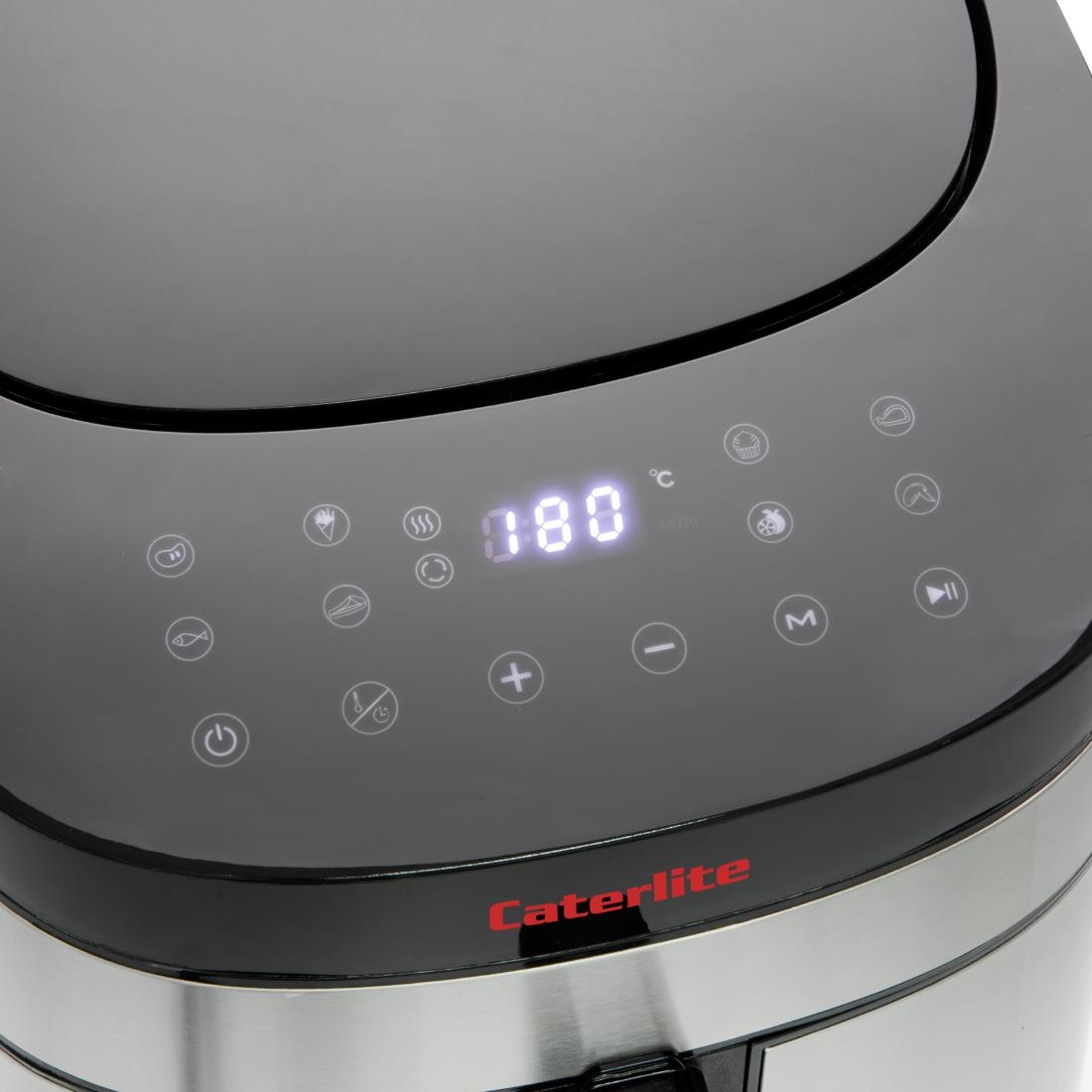 Operation couldn't be easier. The top panel includes a user-friendly digital panel and timer. Simply select one of the eight pre-set programs or set your own temperature and time. The Caterlite air fryer will automatically shut off once the time elapses, minimizing the risk of food burning or waste.