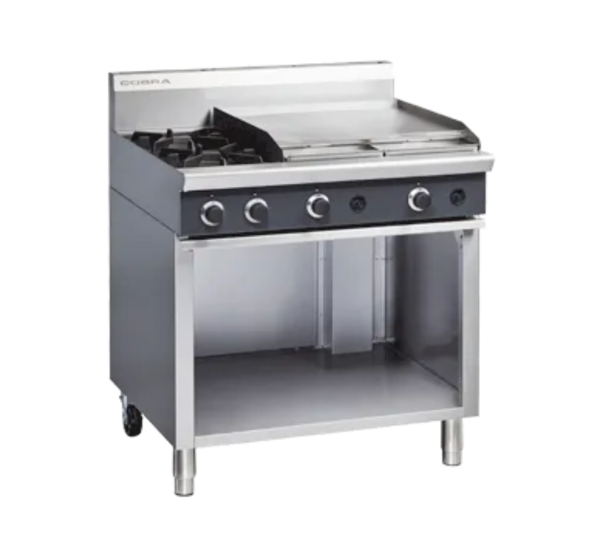 2 burner cooktop with 600mm griddle on open cabinet base