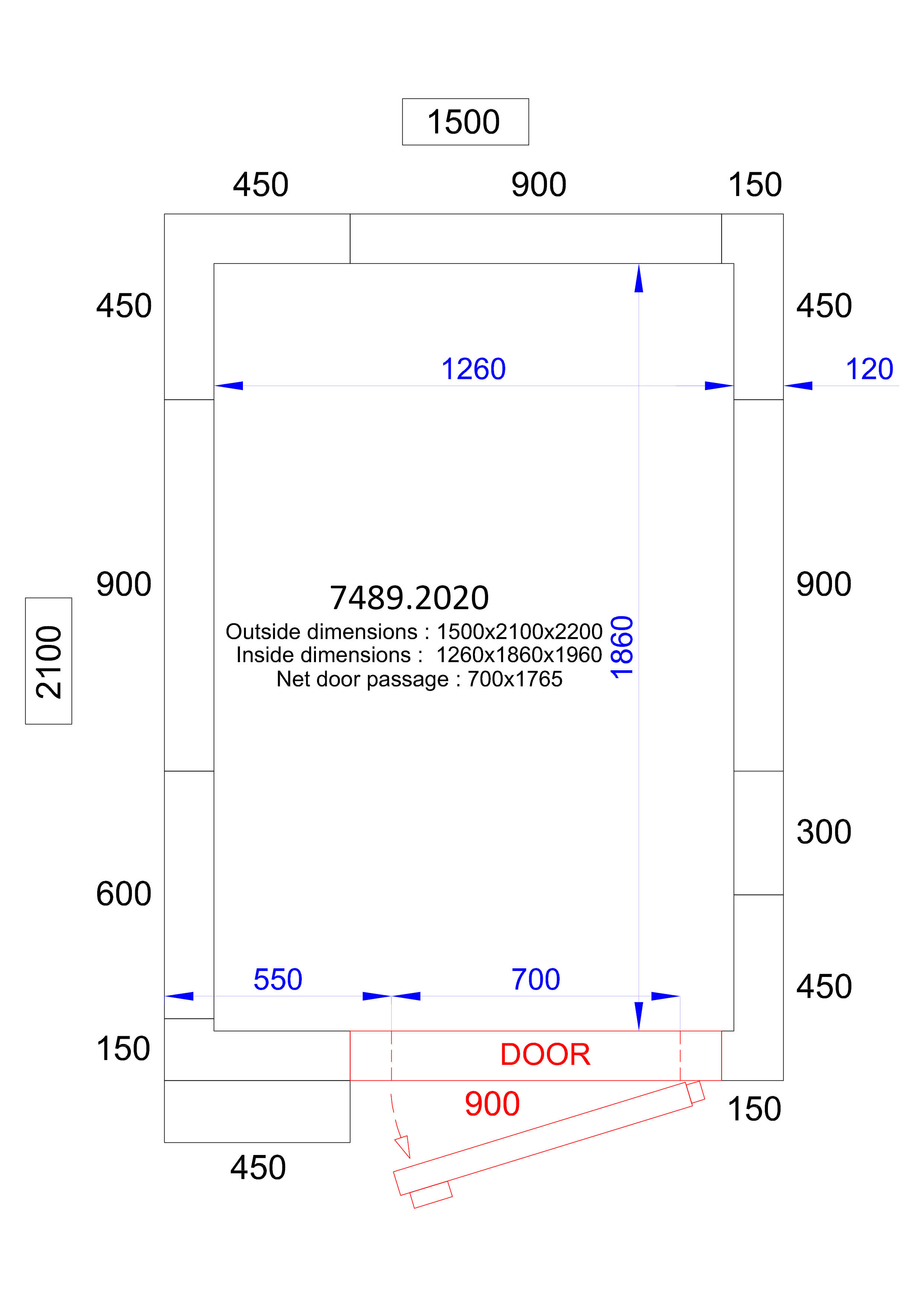 Dimensions: 1500x2100x2200 mm