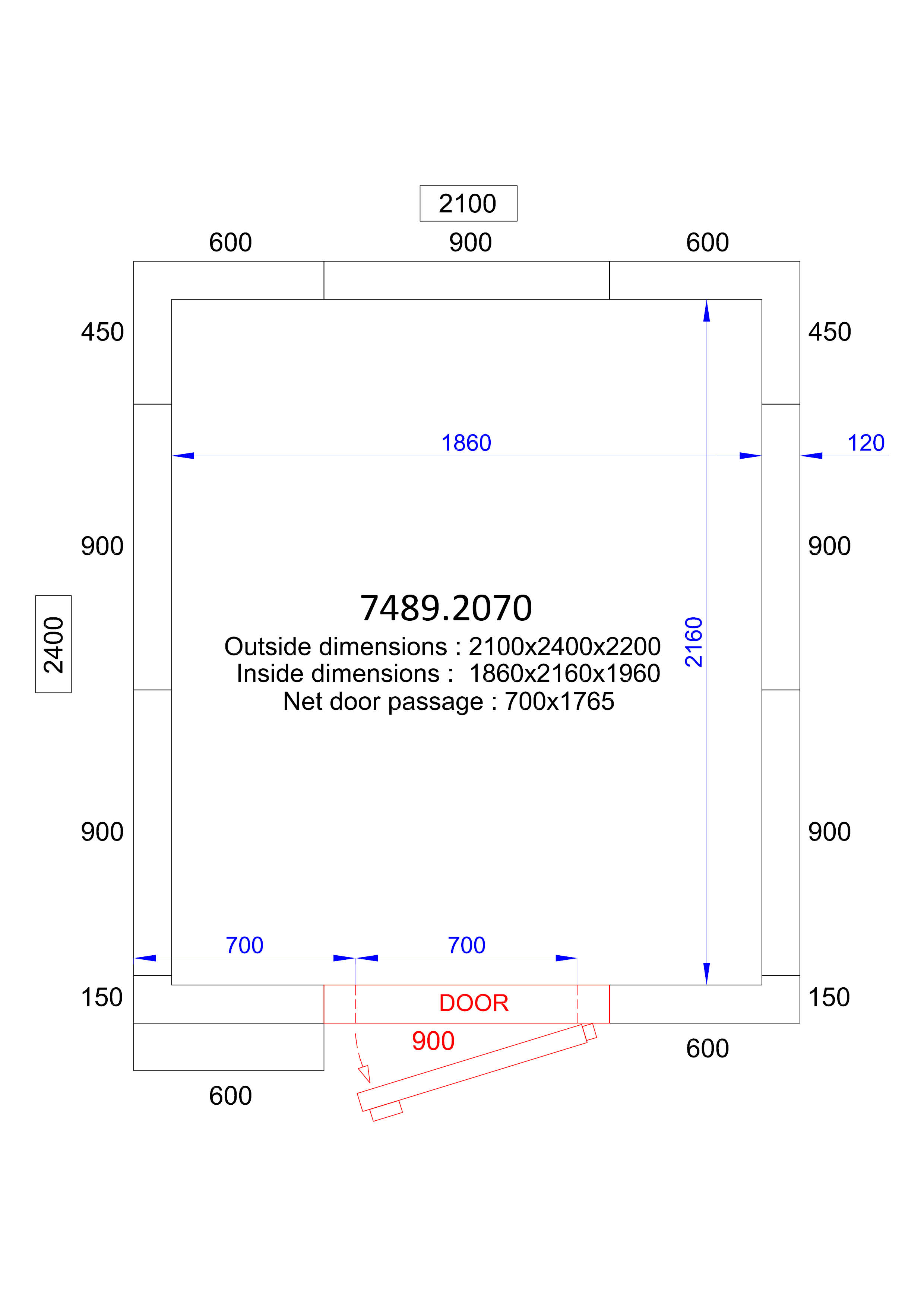 - Interior Dimensions (WxDxH): 1860x2160x1960 mm