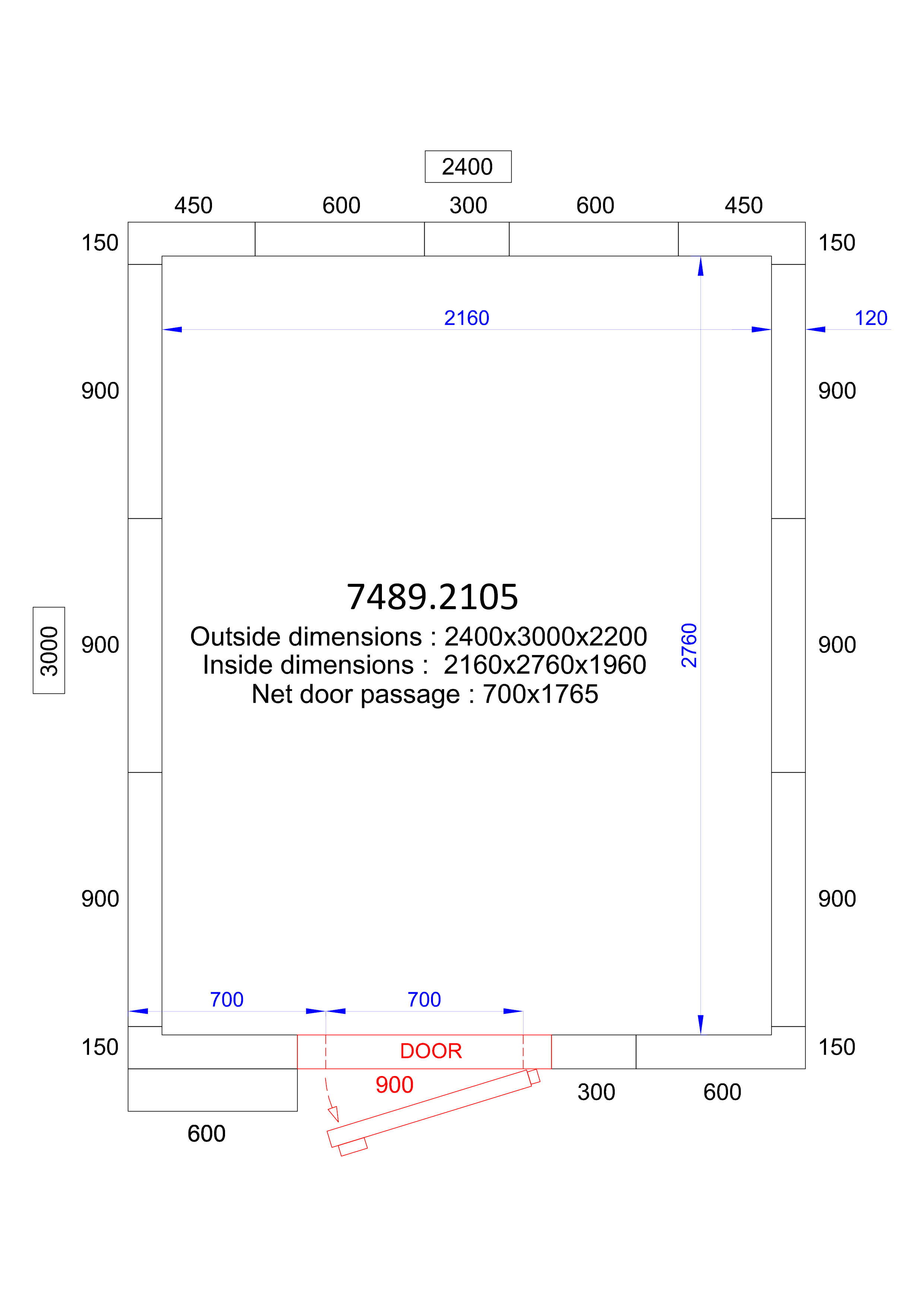 - Dimensions (Interior WxDxH): 2160 x 2760 x 1960 mm