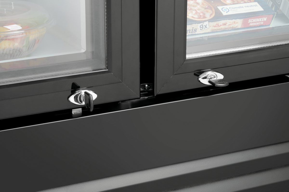 Glass doors for a clear view of contents