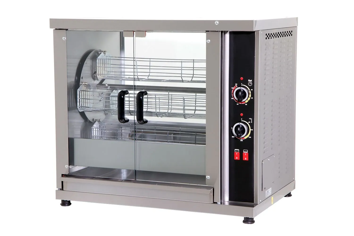 The Combisteel Chicken Rotisserie with 3 spits is designed to efficiently hold 16-20 chickens, each weighing approximately 1.5 kg. It features quality construction and is made from durable stainless steel, ensuring longevity and reliability. Please note that this rotisserie requires a 3-phase power supply for operation.