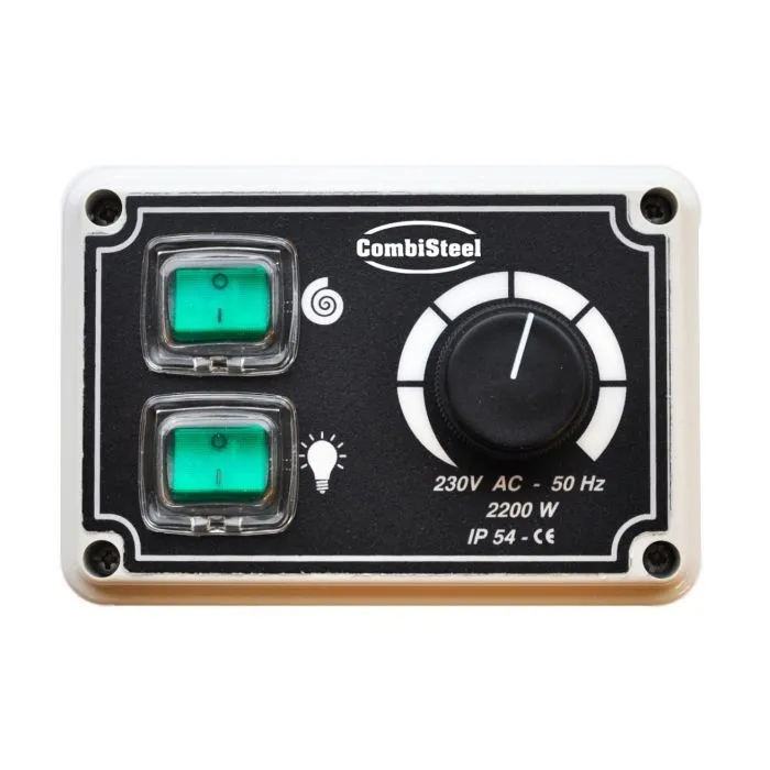 This fan and light control unit is designed for an extraction hood equipped with the necessary component. It features a high-grade plastic build, ensuring durability and longevity. The unit includes a secure cover for the switches and has an IP rating for water resistance, providing reliable protection against moisture.