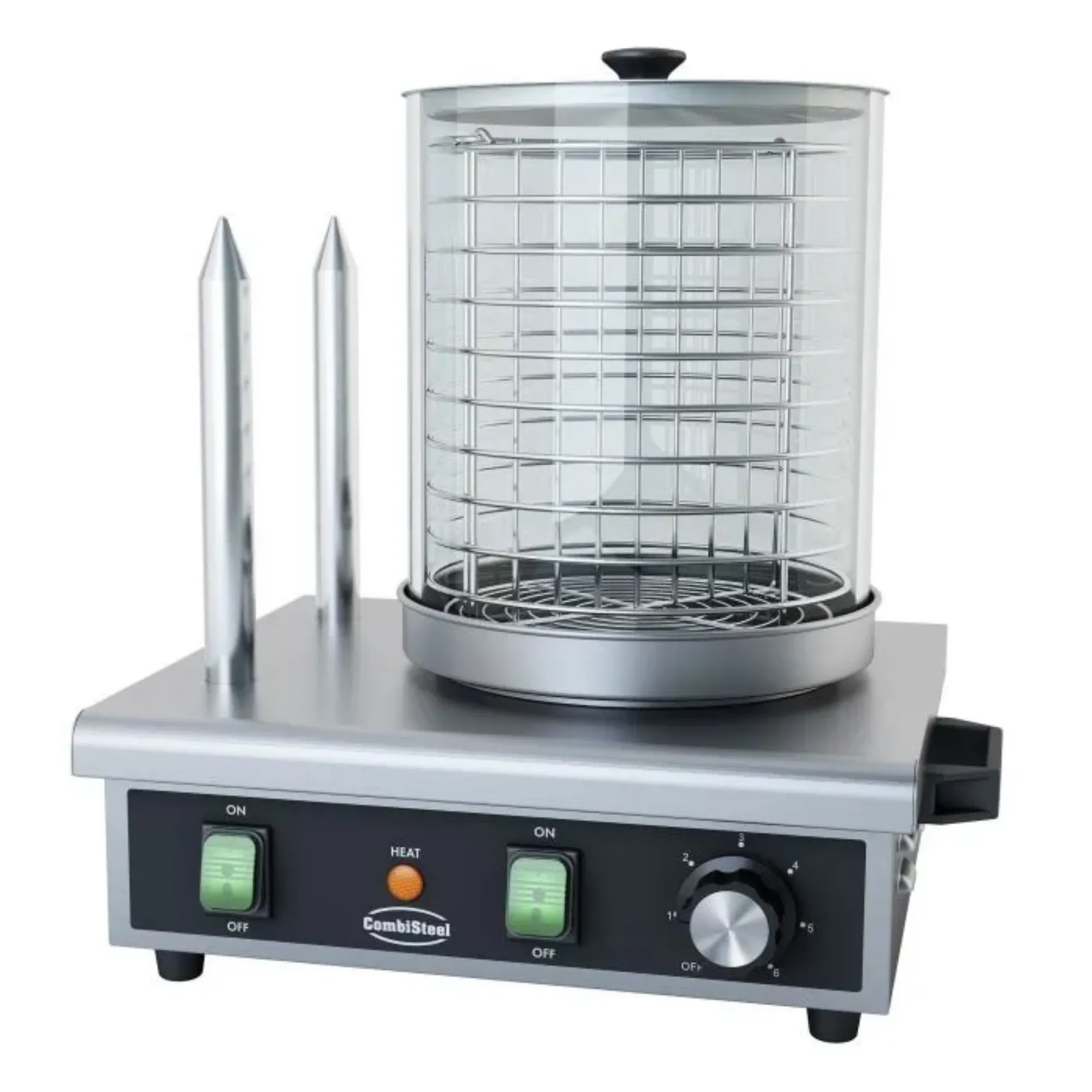 The CombiSteel Hot Dog Warmers is a professional sausage warmer designed to make delicious hot dogs. This hot dog cooker by CombiSteel features a sturdy basket and handle. The indicator lights mounted on this kitchen appliance provide information about the temperature, which is convenient for users. The CombiSteel Hot Dog Warmers is equipped with four rubber feet, ensuring stability regardless of its placement. Additionally, it is entirely constructed from stainless steel, enhancing its durability. The hot dog cooker also includes a protected on-and-off switch for safety. Below, you can find all the characteristics of the CombiSteel Hot Dog Warmers.