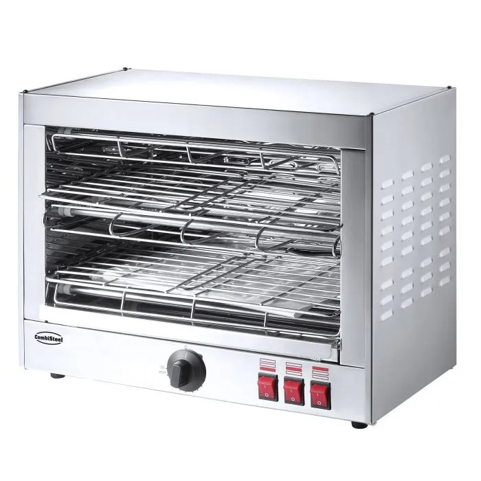 A small broiler oven used to quickly brown, glaze, cook, broil, or toast various foods. The Salamander is often used to provide the nicely browned crust to a crème brûlée, an au gratin dish, or toasted bread.