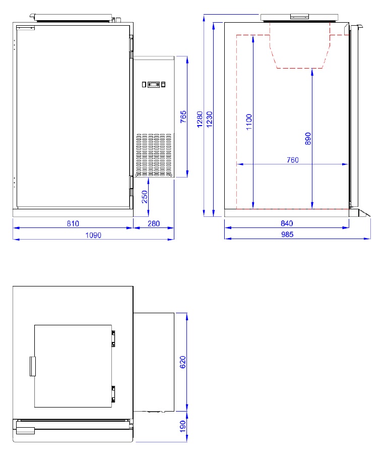 - Interior Dimensions (WxDxH in mm): 645x760x1100