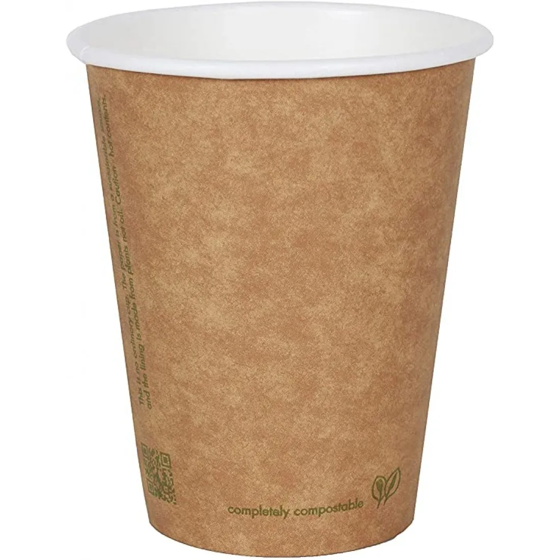 Ideal for all tea, coffee and hot drink menus. The 12oz smart brown design allows you add your own branding. This paper hot drink cup is biodegradable. Compostable lids available White (05263004) Black (05268370). Sustainable twist to your hot drinks service with these 12oz Vegware double-wall, compostable coffee cups. As they're made from paper and lined with plant-based PLA, the cups can be commercially composted after use.