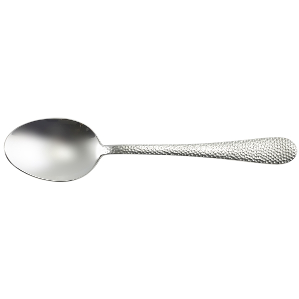 The Cortona Dessert Spoon is more than just a utensil; it is a signature piece with a textured embossment perfect for both formal and casual establishments. The superb, highly polished 18/0 stainless steel provides a sleek and shiny finish that resists staining and pitting, ensuring longevity and consistent performance.